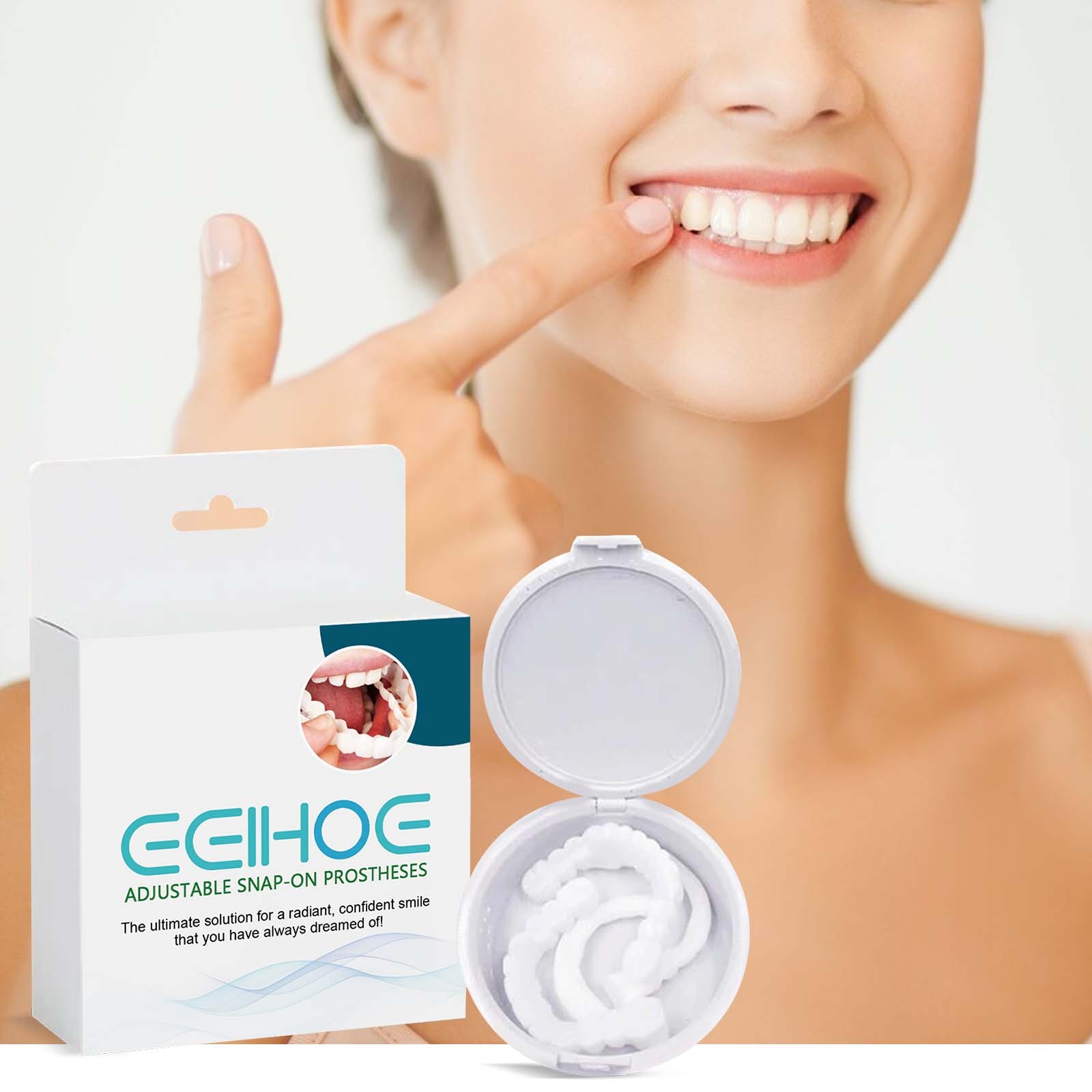 الحل السهل والسريع هو الطقم القابل للتخصيص Adjustable Snap-on Teeth.