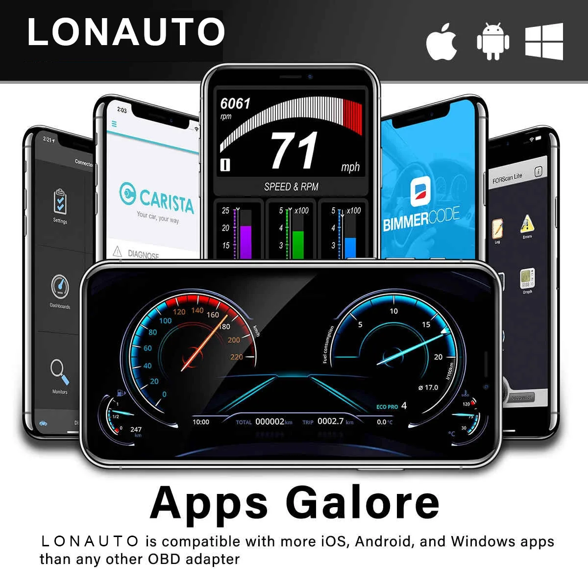 يدعم جميع بروتوكولات OBD2 بما فيها J1850، ويعمل مع معظم السيارات المنتجة منذ 1996 فما فوق (بنزين أو ديزل).