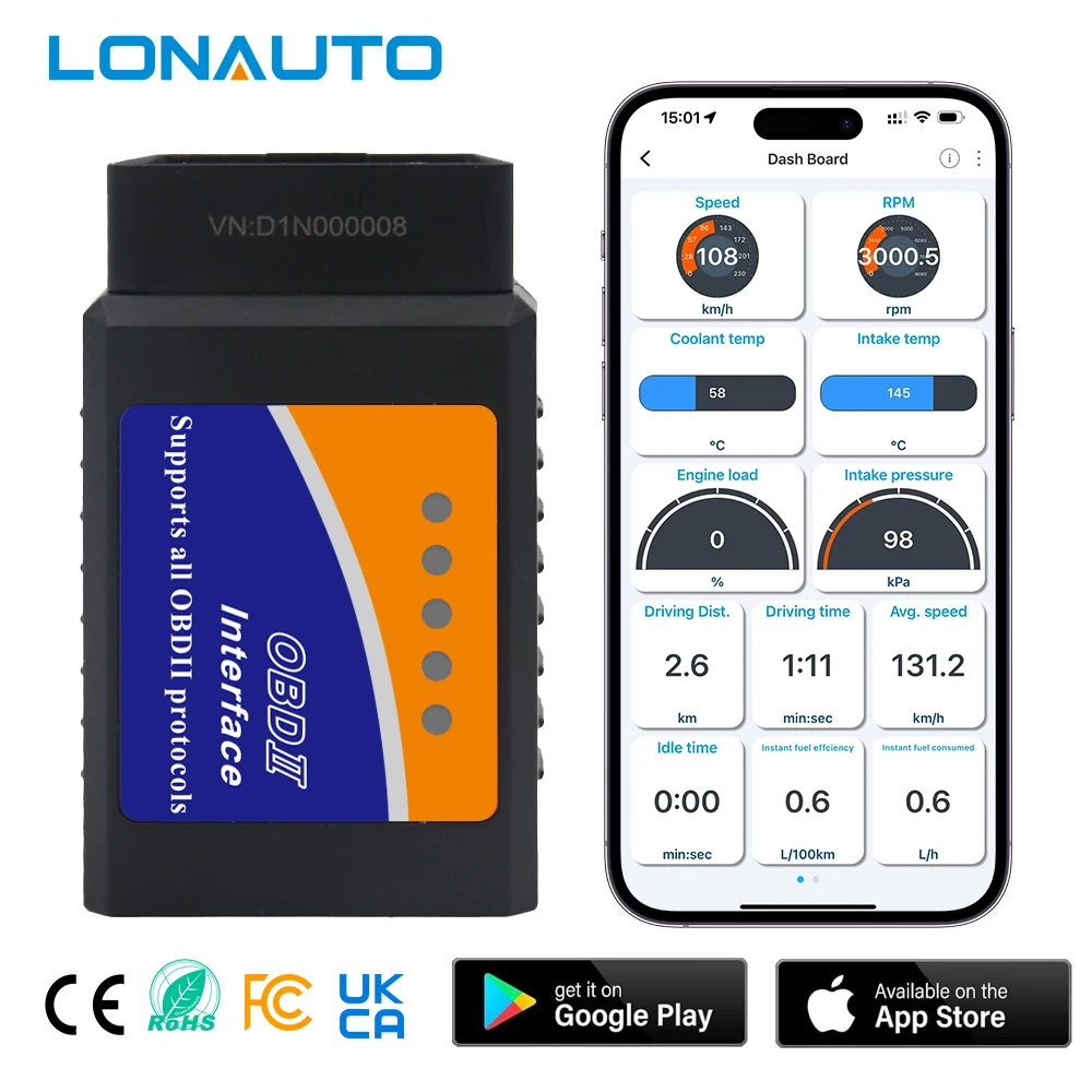 ما عليك سوى توصيل الجهاز بمنفذ OBD2 في سيارتك، ثم الاتصال بهاتفك (iOS أو Android) عبر WiFi أو Bluetooth وتحميل تطبيق الفحص لتبدأ عملية التشخيص فورًا.