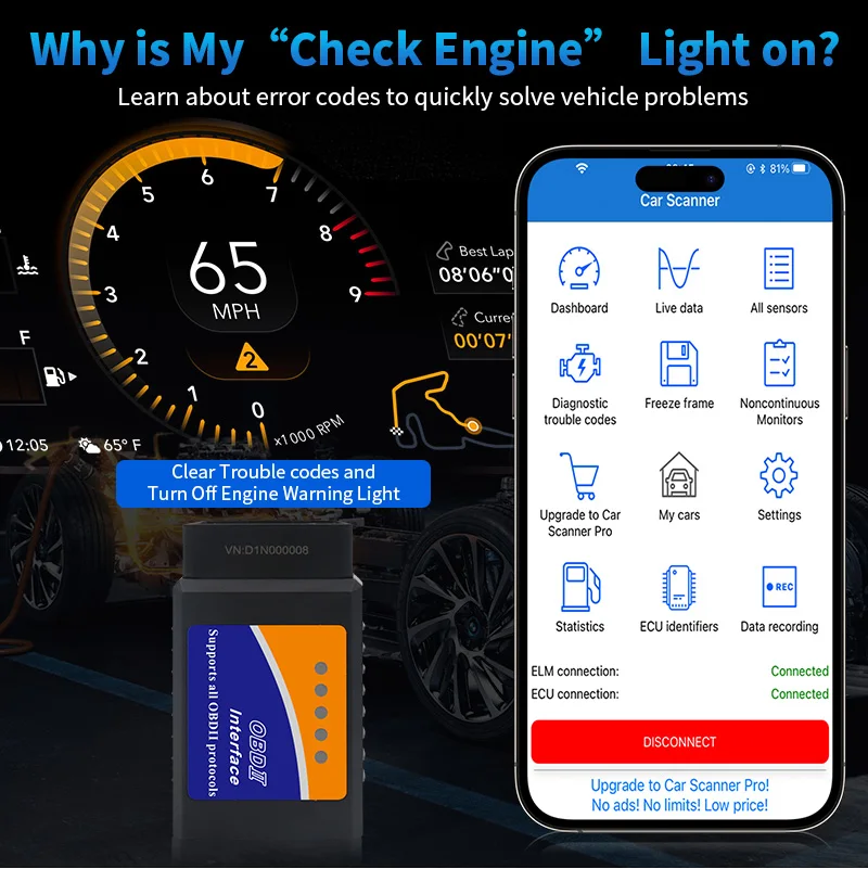 يقرأ ويمسح رموز أخطاء المحرك (Check Engine Light) بسهولة،