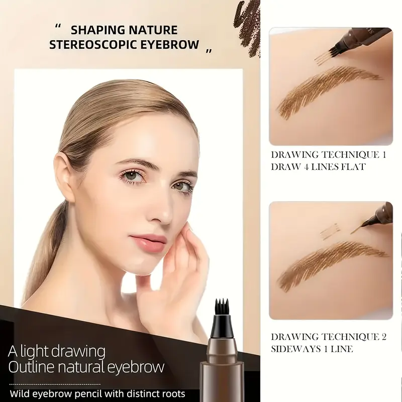 🖊️ دقة عالية: الرأس فيه 4 شوكات دقيقة كترسم خطوط رقيقة تشبه الشعيرات الحقيقية، والنتيجة حواجب وشعر طبيعيين ومتناسقين 💫