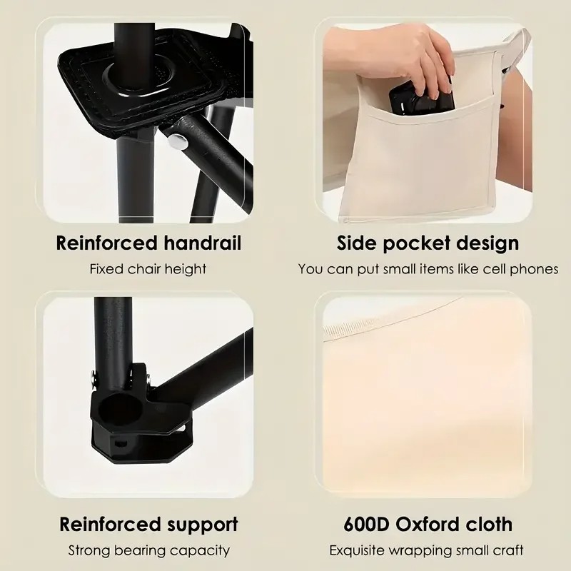 ثبات وأمان عالي: بفضل الهيكل المثلث والقاعدة المضادة للانزلاق، الكرسي يبقى ثابت حتى على الأسطح غير المستوية.