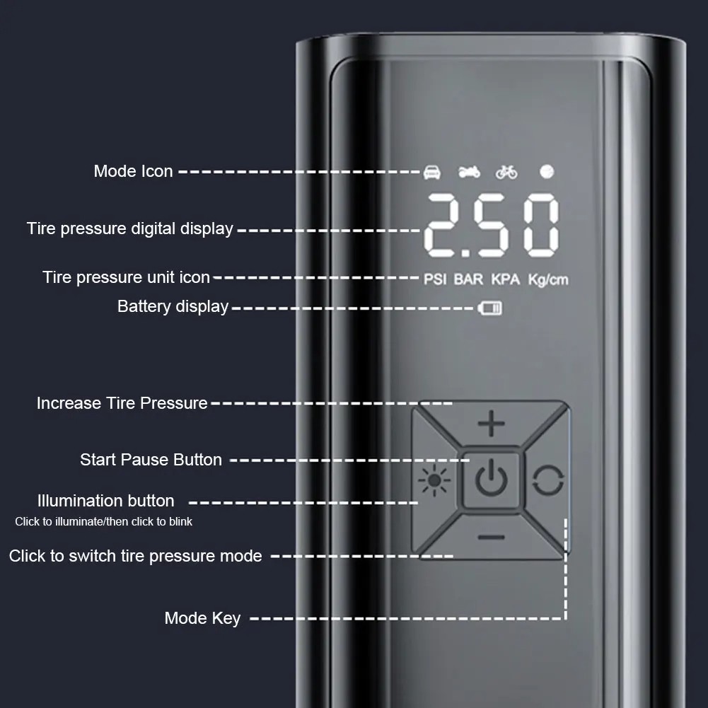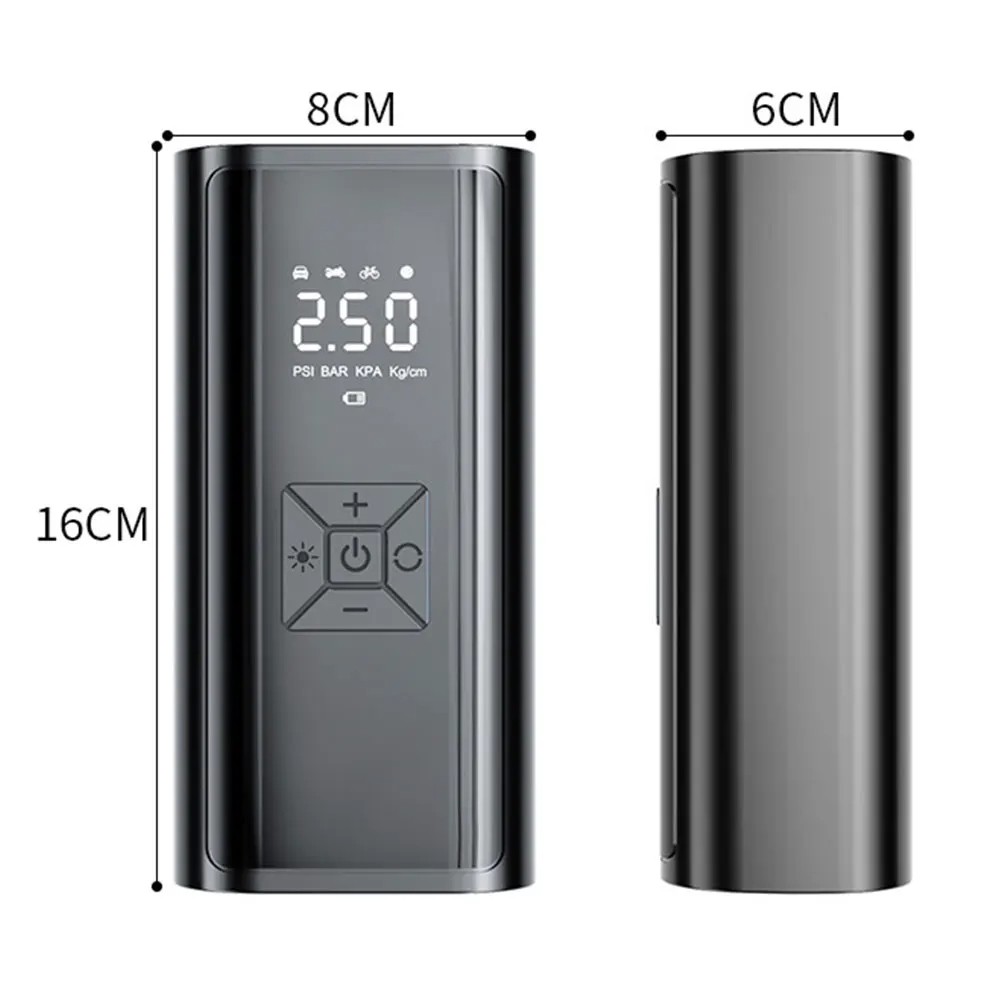 مع مضخة الهواء المحمولة الذكية، يمكنك نفخ إطارات سيارتك أو دراجتك أو حتى البالونات بسرعة ودقة بفضل تصميمها العصري وتقنيتها المتطورة 💪