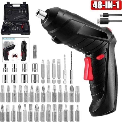 🔧 مفك براغي كهربائي لاسلكي مع 47 ملحقًا