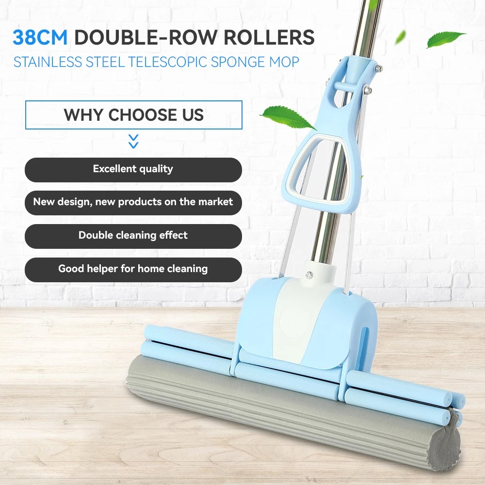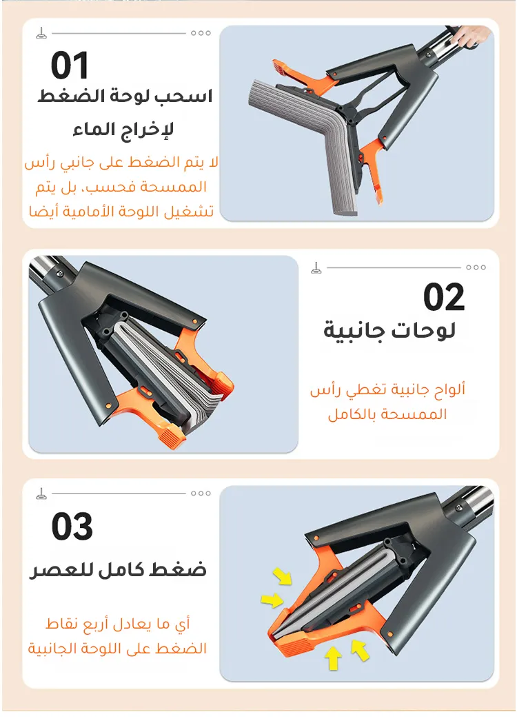 🧽 رأس إسفنجي كبير (33 سم): قدرة فائقة على امتصاص الماء وإزالة الأوساخ، مع أخاديد أفقية تلتقط الغبار والشعر والوبر بسهولة.