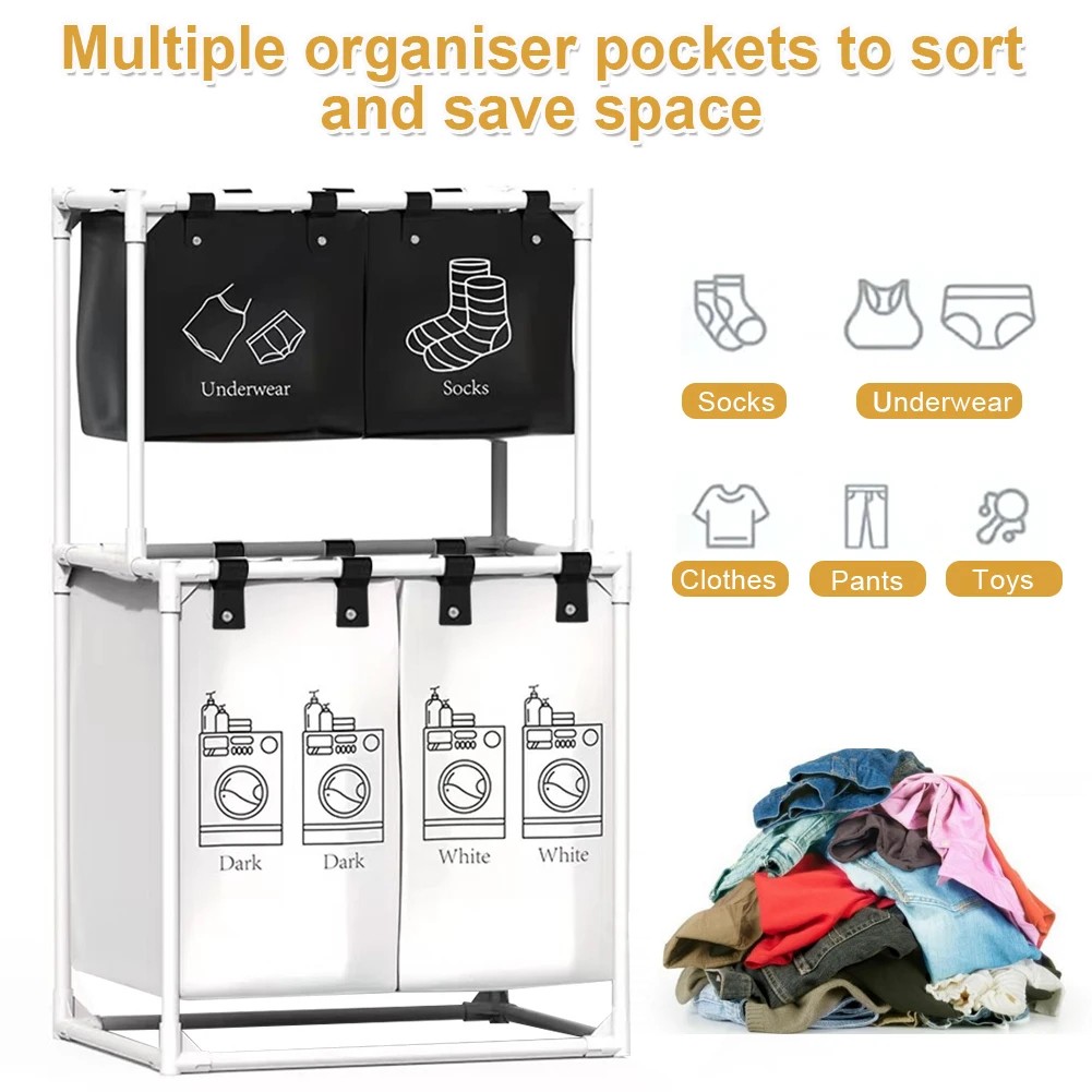 مع سلة الغسيل متعددة الطبقات، غادي تنظمي الملابس ديالك بسهولة وذكاء بفضل التصميم العملي والجودة العالية 💪
