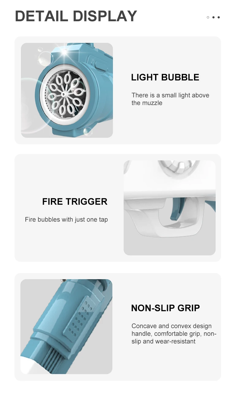 يطلق كمية كبيرة من الفقاعات بسرعة وبكثافة عالية، كيصنع جو ساحر مليء بالمرح 🎉