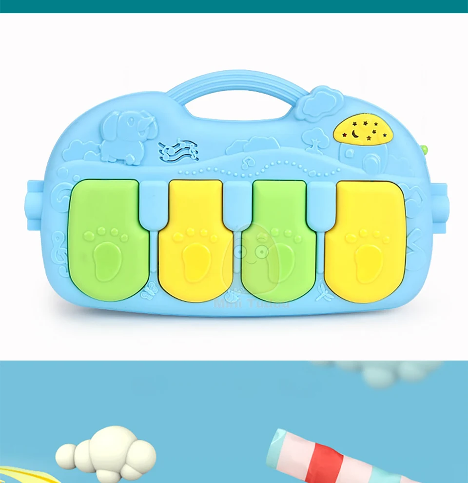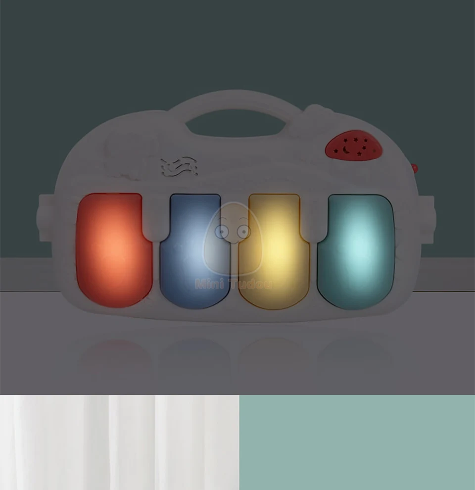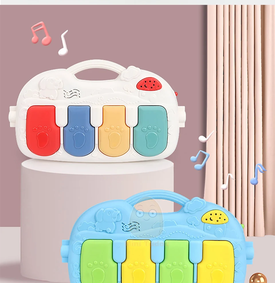 🎵 لوحة مفاتيح موسيقية: مزودة بأزرار بيانو ملونة تصدر أصواتًا مبهجة لتحفيز حواس السمع عند الطفل وتشجيعه على حب الموسيقى.