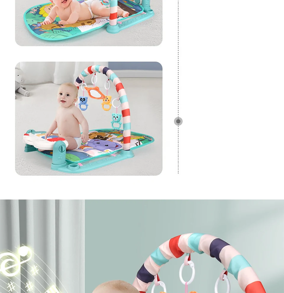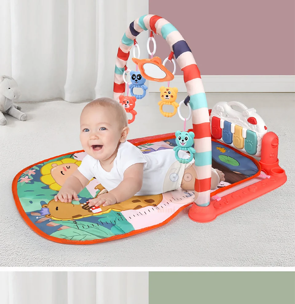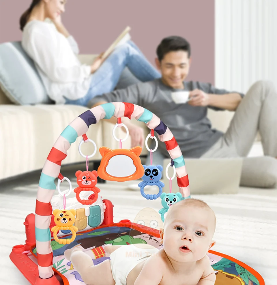امنحي طفلك تجربة لعب ممتعة وتعليمية في نفس الوقت مع سجادة اللعب المزودة بلوحة مفاتيح البيانو. مصممة خصيصًا لتنمية قدرات الطفل الحسية والحركية منذ الأشهر الأولى.