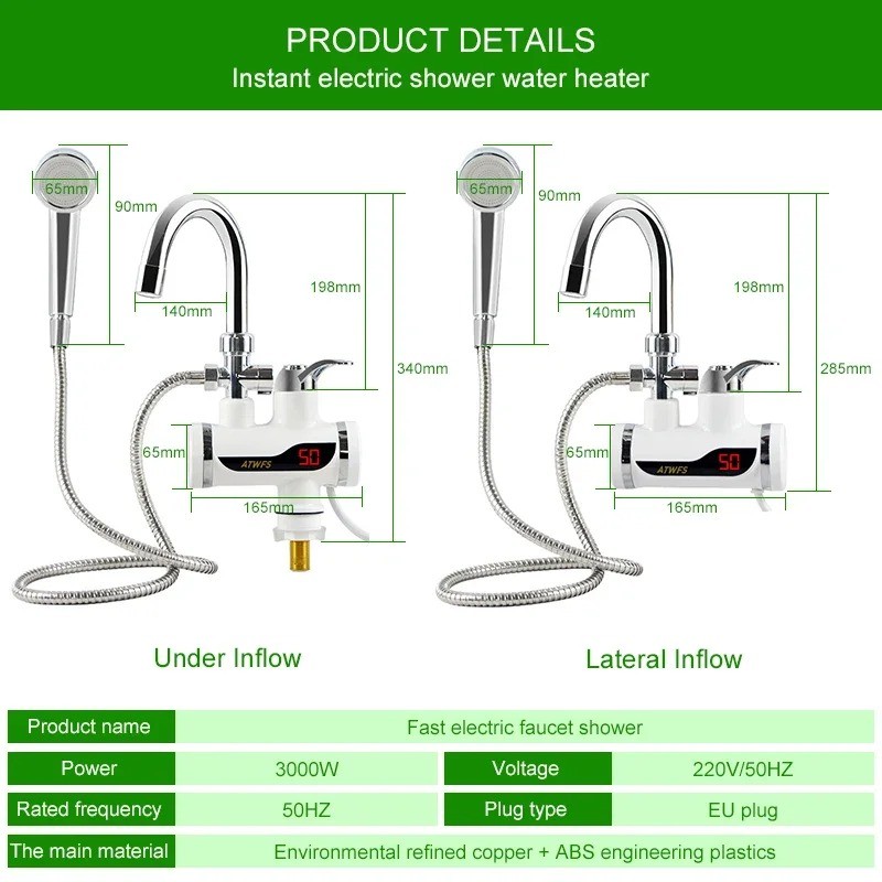 🚰 صنبور كهربائي 3000 واط مع شاشة رقمية – ماء ساخن فورًا بدون انتظار