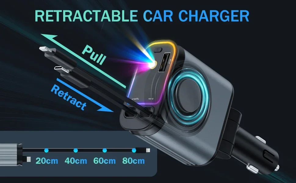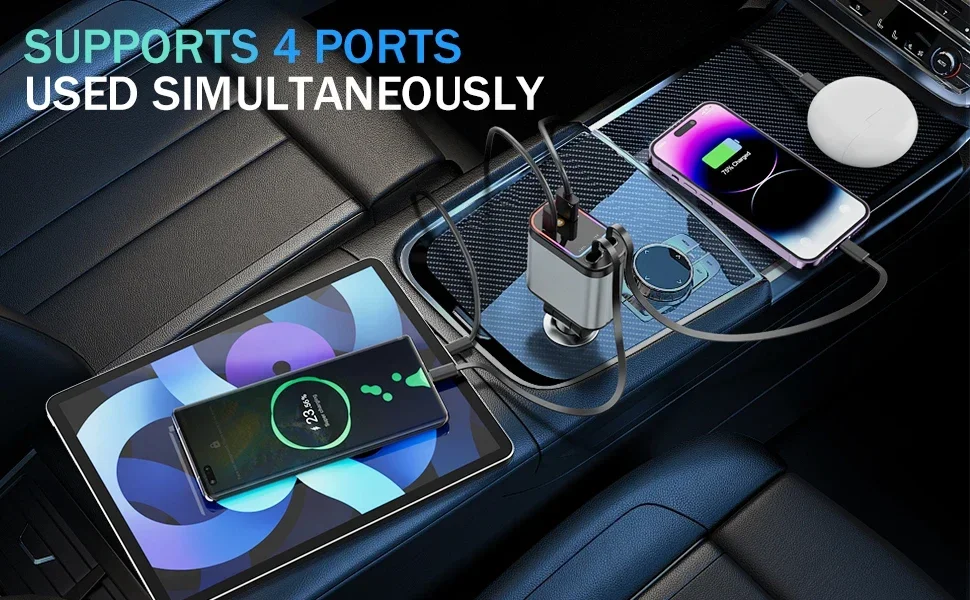 ⚡ Starry Sky 4 in 1 – شاحن سيارة قابل للسحب سريع وعصري